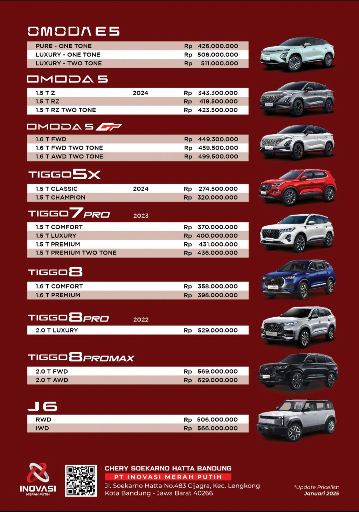 harry chery City store Bandung City mall hadir untuk memberikan pengalaman terbaik dalam memiliki mobil premium dengan teknologi canggih dan desain futuristik. Kami menawarkan berbagai model terbaru dari Chery, seperti OMODA 5, OMODA E5, TIGGO 8, TIGGO 5X, dan J6, dengan harga yang kompetitif serta promo menarik.